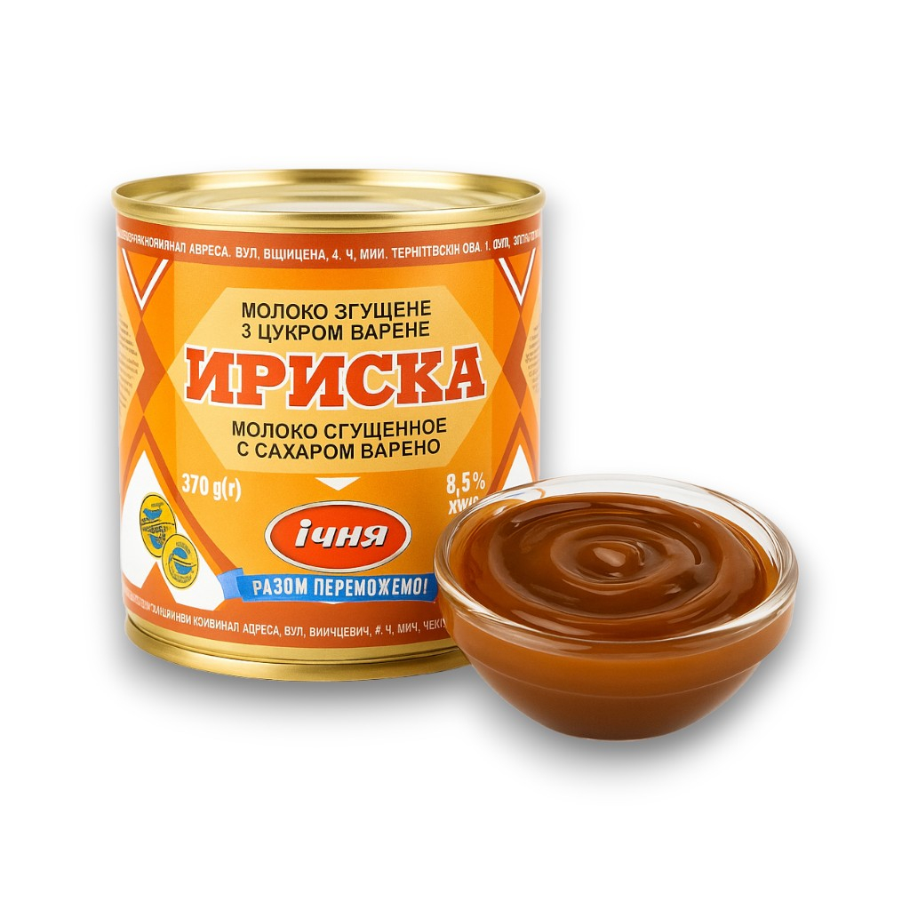 Lapte condensat fiert „Iriska” de la Ichnya – o cremă caramel delicioasă, cu textură fină și gust intens de lapte și zahăr caramelizat. Perfect pentru deserturi, clătite, prăjituri sau pentru a fi savurat direct cu lingurița.