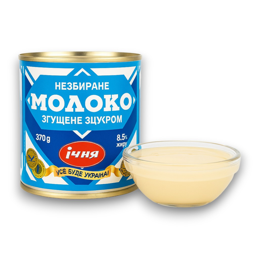 Lapte condensat îndulcit Ichnya – un produs tradițional ucrainean, preparat din lapte integral și zahăr. Textură cremoasă, gust dulce natural și calitate superioară, ideal pentru deserturi, cafea, prăjituri sau băuturi calde.